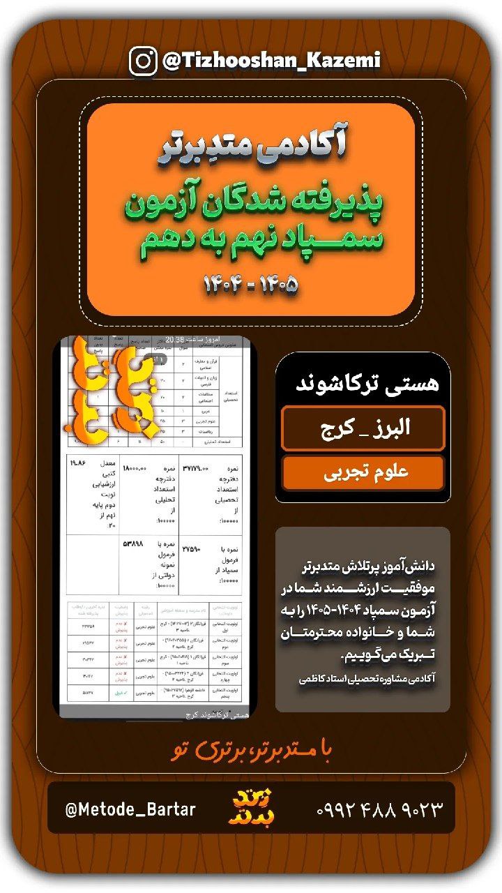 ما هر سال از ۱۰ شاگرد ۹ تا قبولی میدیم بخش از رضایت ها و افتخارات مارو میتونید ببینید. 👇👇👇